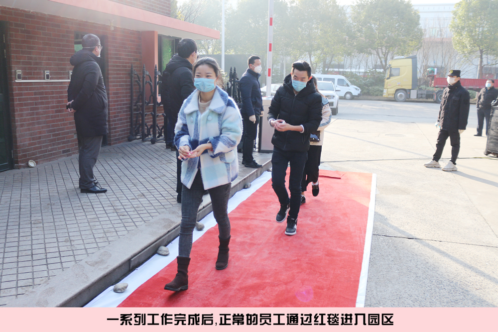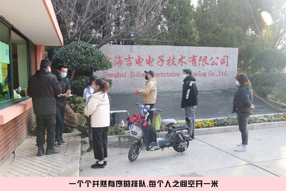 2月10日,坐落于閔行區(qū)華漕鎮(zhèn)的上海吉電生產(chǎn)園區(qū)內(nèi),正等待上班的同事們有序排隊(duì)地進(jìn)行著入園檢查,先洗手、再登記、量體溫,發(fā)出入證,最后踏上能夠消除鞋底細(xì)菌病毒的“紅毯”...... 疫情防控措施做得非常到位。