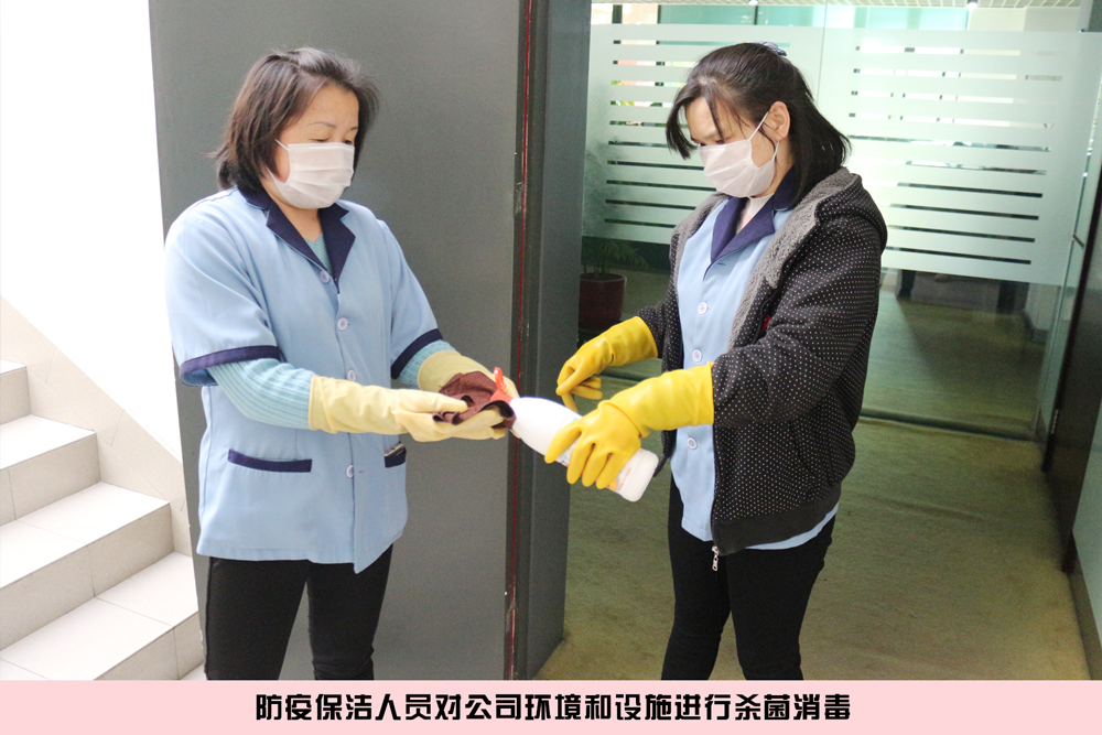 企業(yè)是疫情的第一道關(guān)口,必須要落實(shí)好主體責(zé)任、做好安全防護(hù),公司成立了以總裁張世玨為領(lǐng)導(dǎo)的疫情指導(dǎo)小組,及時(shí)制定防控方案、建立消毒制度,加強(qiáng)防護(hù)宣傳教育,備好防控物資,任何復(fù)工人員進(jìn)廠前都必須完成四道防疫工序,一是嚴(yán)格落實(shí)體溫檢測、二是佩戴防護(hù)物品、三是工作路線安排、四是在崗員工全部實(shí)行分餐制等要求。同時(shí),防疫保潔人員在園區(qū)必須每天殺菌消毒,并通過企業(yè)微信發(fā)放了疫情的防護(hù)要求。